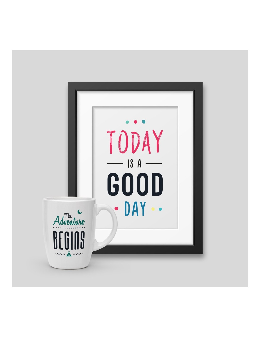 Mug The Adventure Begins + Affiche encadrée Today is a good day 40x60cm